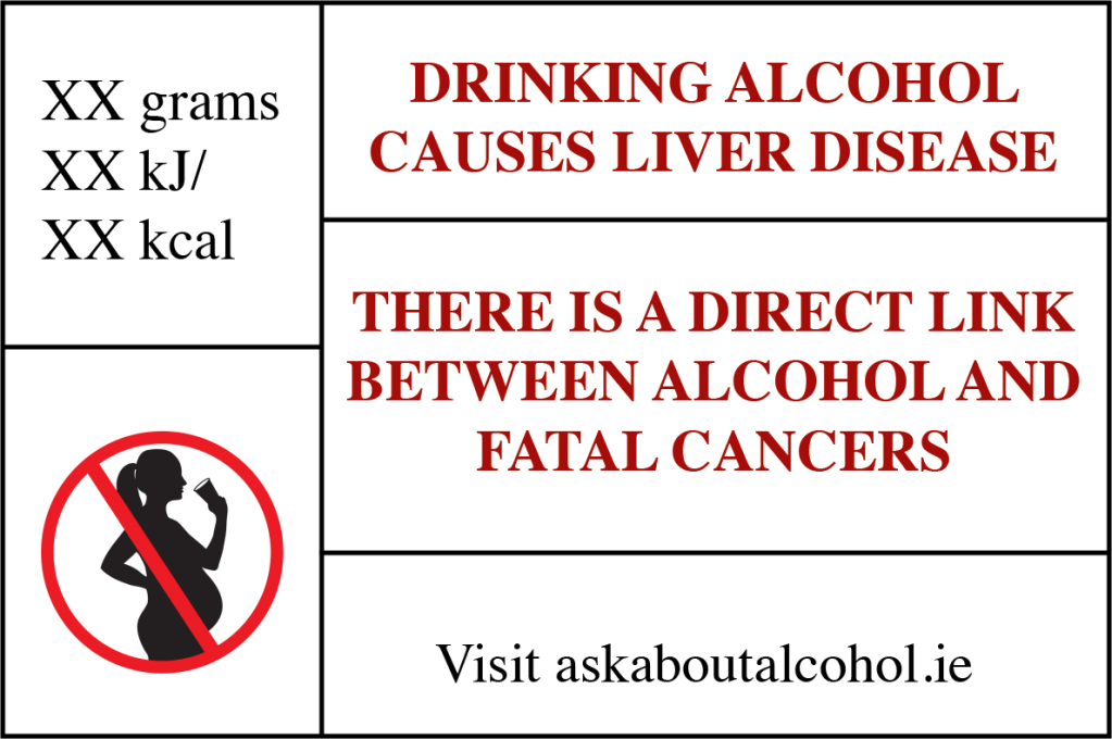 In October 2018, Ireland signed into law its Public Health (Alcohol) Act 2018. In May 2023, Ireland signed into law as its Public Health (Alcohol) (Labelling) Regulations 2023. From May 2026, non-reusable alcohol containers will be required to include the following labelling.