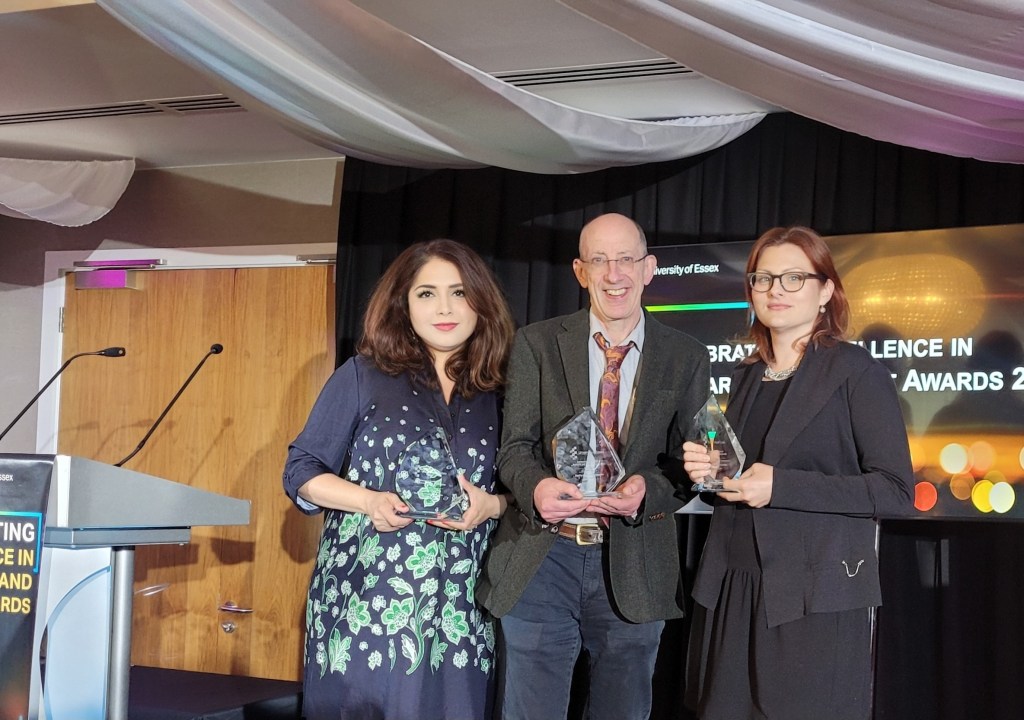 On 22 May 2024, the University of Essex showcased its top-tier research achievements at the Celebrating Excellence in Research and Impact Awards ceremony on our Colchester campus. The event honoured individuals and projects that have significantly enhanced lives worldwide through Essex’s ground-breaking work.